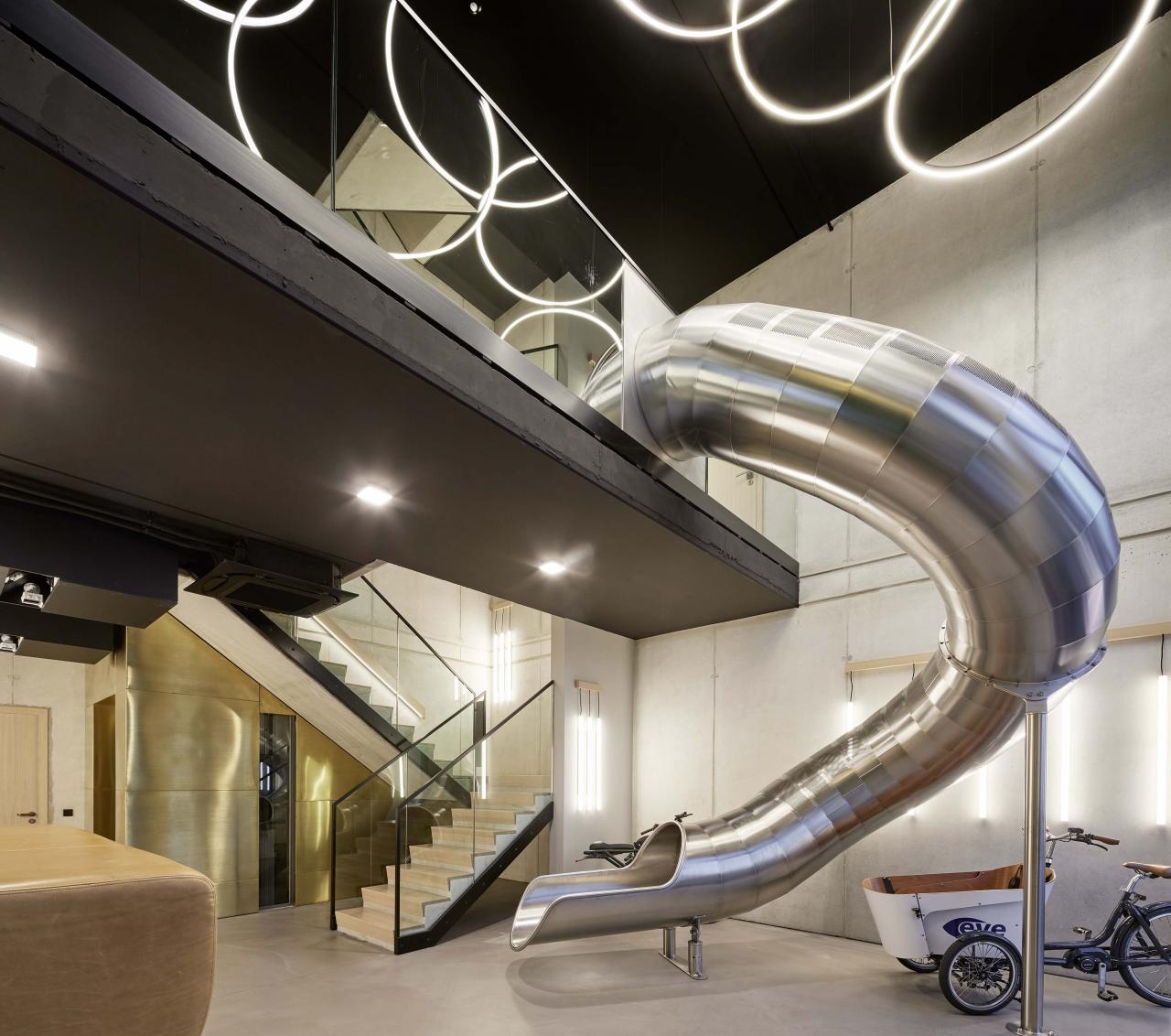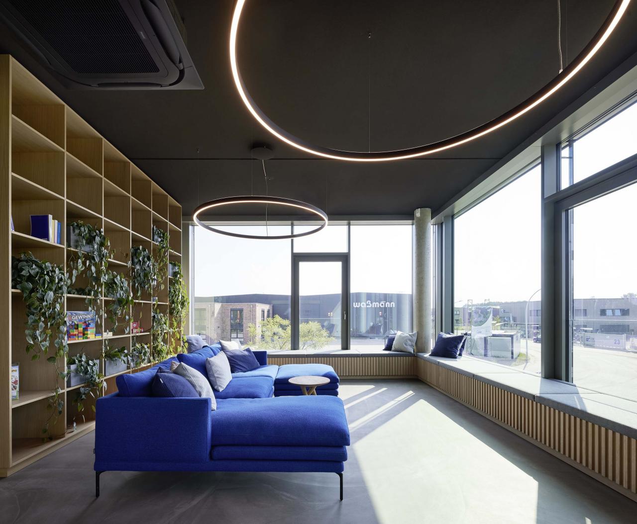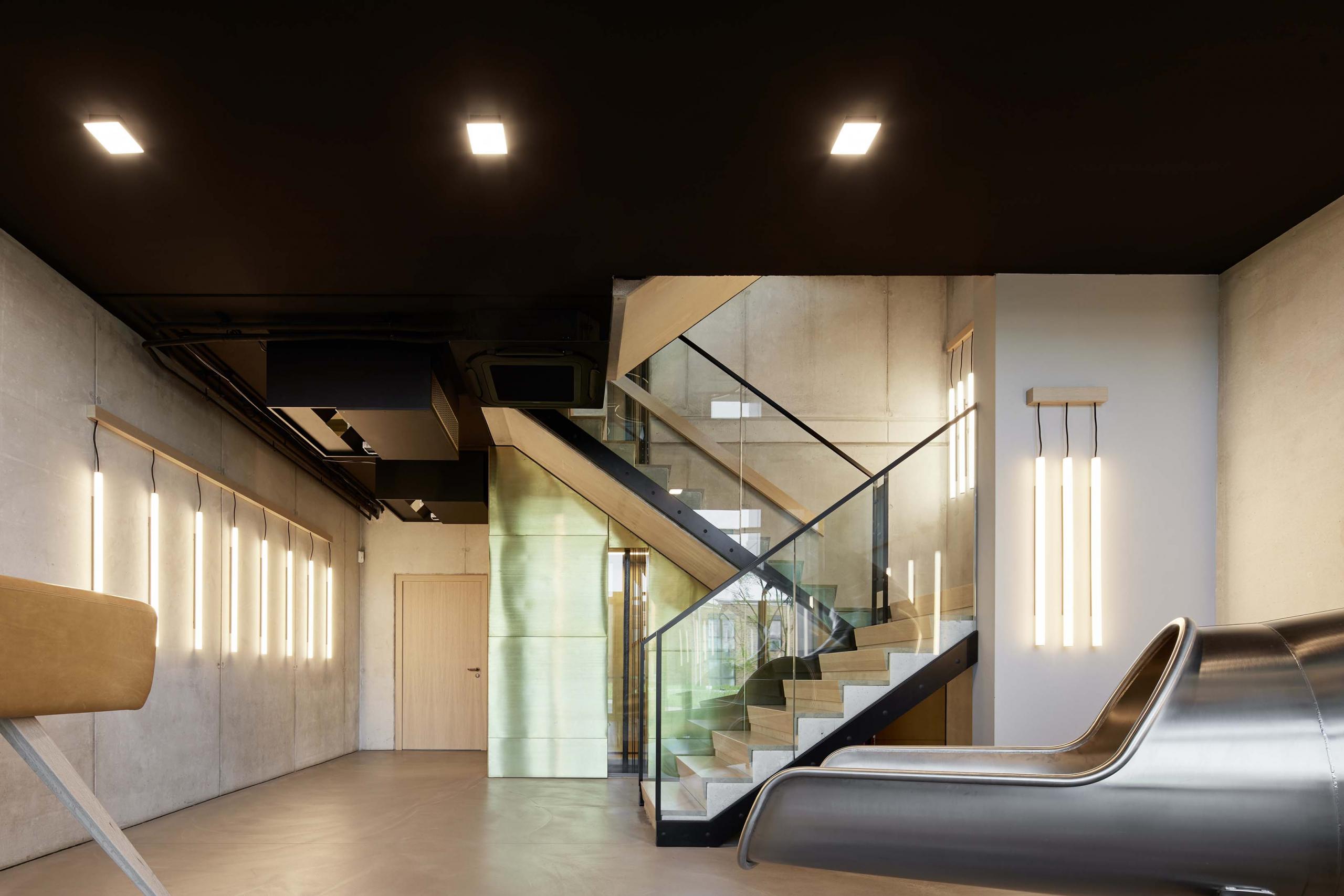 Auf vier Etagen entstanden unter anderem rund 40 Arbeitsplätze, kombiniert mit schnell und flexibel zuschaltbaren Besprechungsbereichen, die spontane Meetings unkompliziert ermöglichen. Dazu ein perfekt abgestimmtes Verhältnis von Licht und Akustik für maximale Wohlfühlatmosphäre. Um maximalen Komfort für die Mitarbeiter zu erreichen, ist neben einer Kantine und Küche auch ein Gaming-Room, ein Schlafraum sowie eine Bibliothek ins Gesamtkonzept integriert.