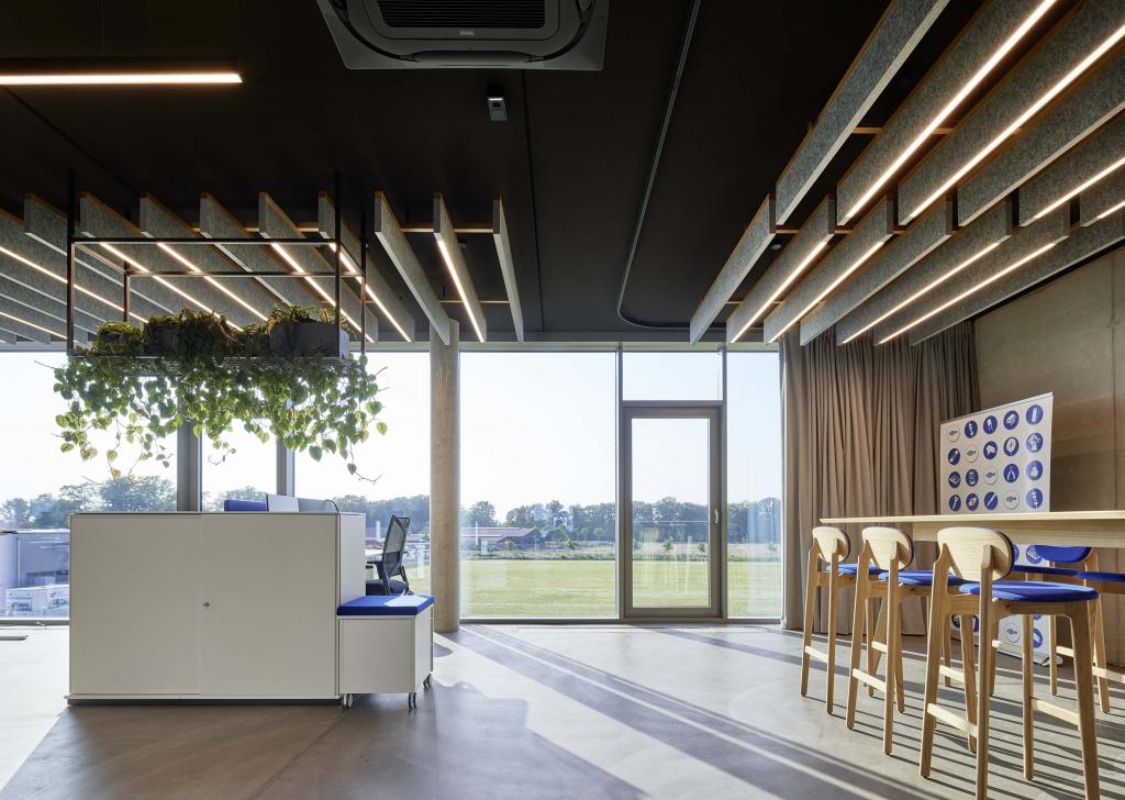 Das Hauptaugenmerk bei der Gestaltung der neuen Räume lag auf der Vereinbarung modernster Technik, großzügiger und flexibler Arbeitsplätze sowie gemütlicher Rückzugs- und Mehrzweckräume. Bereits der Eingangsbereich im Erdgeschoss beeindruckt durch seine großzügigen Formen und hochwertig verbauten Materialien.