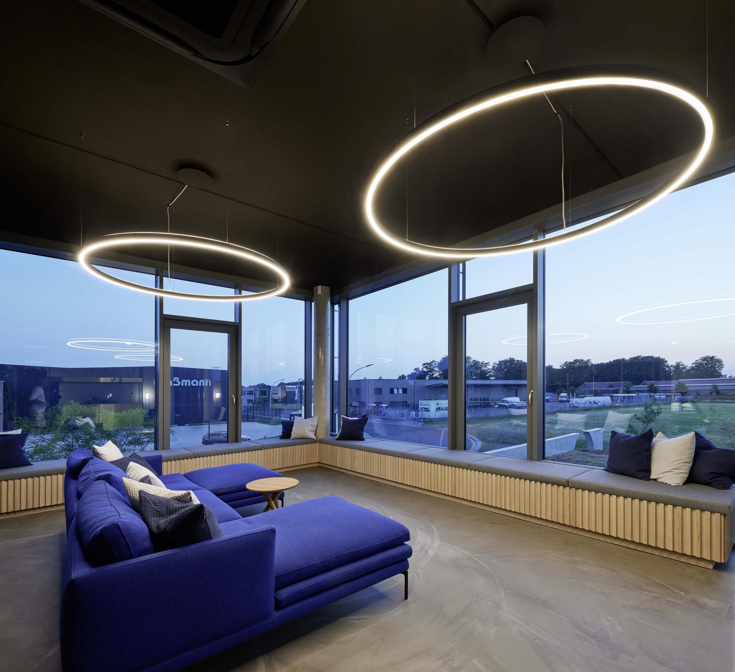 Die Farben und Formen sind abgestimmt auf die Werte und Maßstäbe des Unternehmens und ziehen sich durch alle Etagen. Ein insgesamt sehr gelungenes, zeitloses und doch pulsierendes Projekt. Wir sind stolz, einen zutiefst zufriedenen Kunden am Ende der Realisierungsphase zurücklassen zu können.
