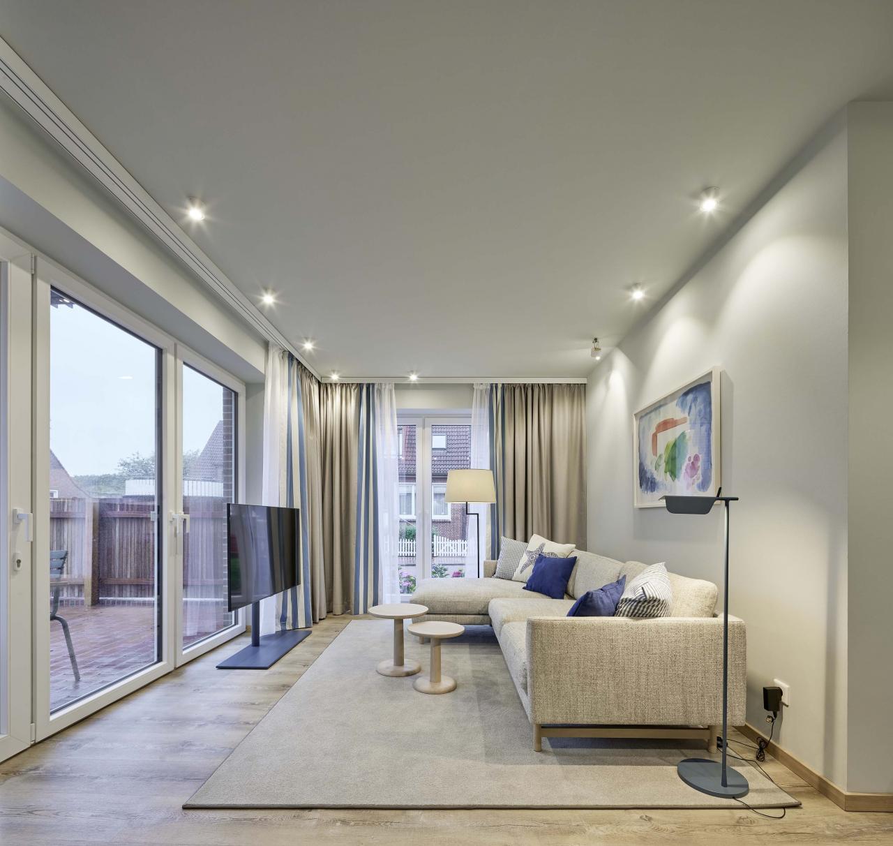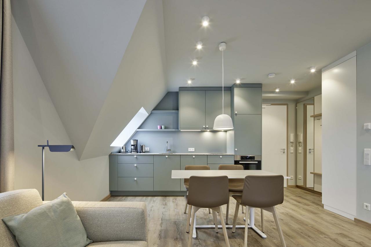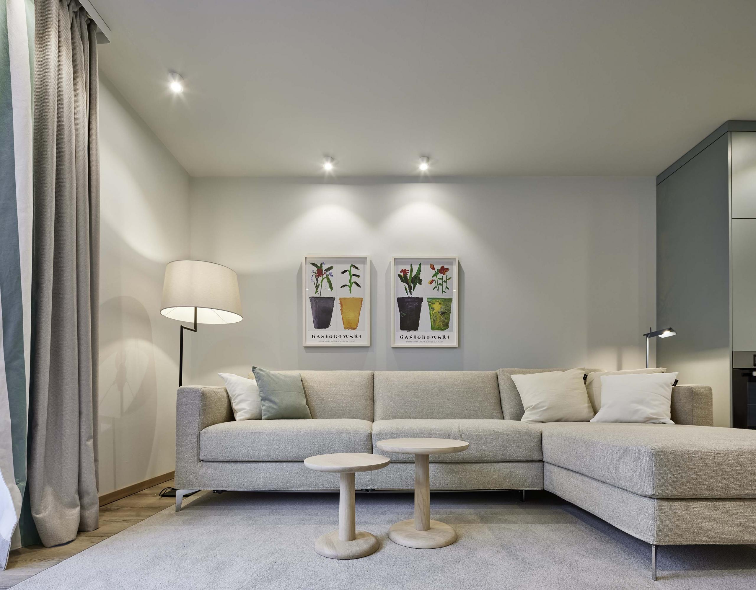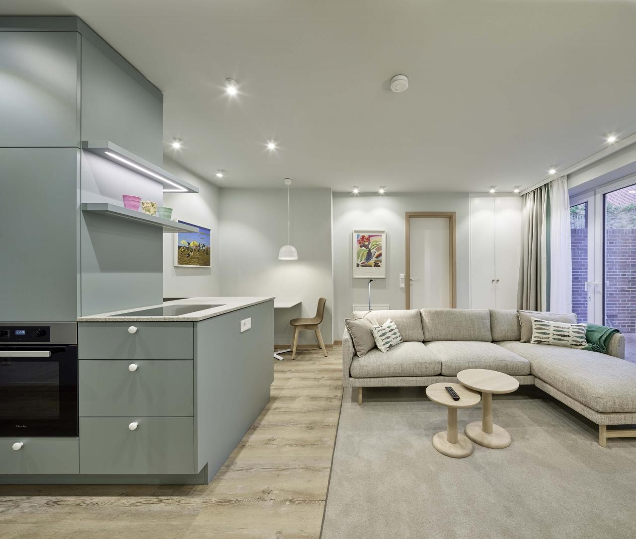 In den zwölf Ferienwohnungen punktet das Konzept zusätzlich mit seinen ästhetischen Schlafsofas, die ein vollwertiges Doppelbett mit Matratze hervorbringen. Durchdachte Flexibilität im Entwurf sowie in der Vermietung ist eine der Leitideen im Konzept. Die separaten Zugänge zu den Wohnungen ermöglichen eine maximale Diskretion in der Nutzung.