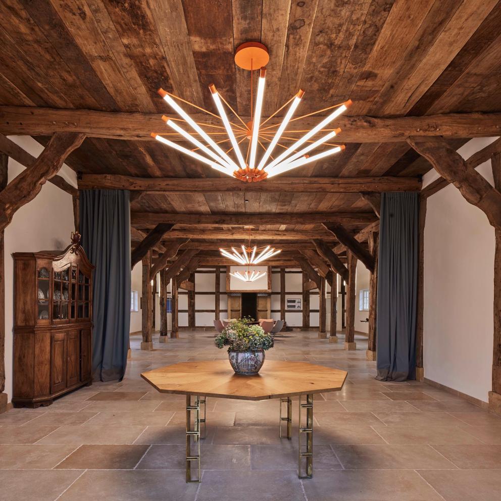 Das Herzstück des Projektes ist das besondere Lichtkonzept der Leuchtmanufaktur BUGLight. Dieses verschafft den Räumen ihr ganz besonderes Charisma. Die Konzeptionierung und Verwirklichung vom Innendesign wurde bereits 2020 von freiraum geplant und in nur wenigen Wochen realisiert. Bei der Umsetzung spielten die Aspekte Transparenz, Tradition & Nachhaltigkeit für die Speichermacher die entscheidende Rolle.